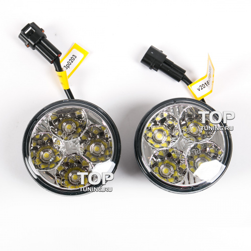 Отличная замена противотуманных фар на городских автомобилях. Светодиоды имеют повышенный срок службы, потребляют мало энергии и заметны в любых погодных условиях. Легкие в установке, надежные и очень яркие. Ходовые огни не потребуют изменений в конструкции вашего бампера, т.к. устанавливаются в штатные круглые отверстия, диаметром 70 мм.