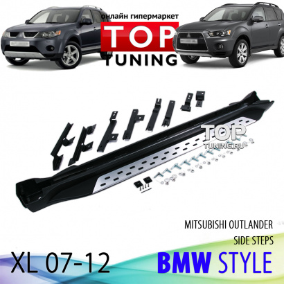 Алюминиевые пороги-подножки БМВ Стиль - Тюнинг Митсубиси Оутлендер XL 2007-2012