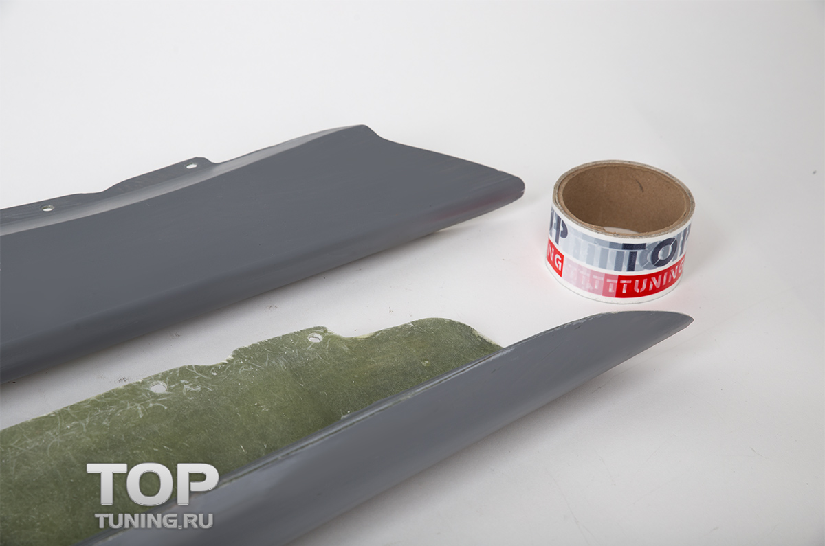 Пороги выполнены из стеклопластика, не окрашены. Устанавливаются на двухсторонний скотч и герметик. Деталь эстетично дополняет дизайн автомобиля и добавляют его внешнему виду новизны.