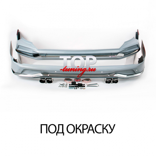 Комплект поставляется в неокрашенном виде. Устанавливается поверх штатных бамперов Lexus LX 570 на двухсторонний 3М скотч и специальные крепления (в комплекте). Хромированные элементы установлены на болтовые соединения с внутренней стороны накладок, Топ Тюнинг рекомендует демонтировать хром перед окрашиванием комплекта. Все элементы обвеса имеют обратные установочные площадки с широким, двухсторонним 3М скотчем, обеспечивающие плотное прилегание компонентов с минимальными зазорами. Декоративные насадки устанавливаются на специальные кронштейны к штатному бамперу Лексус.