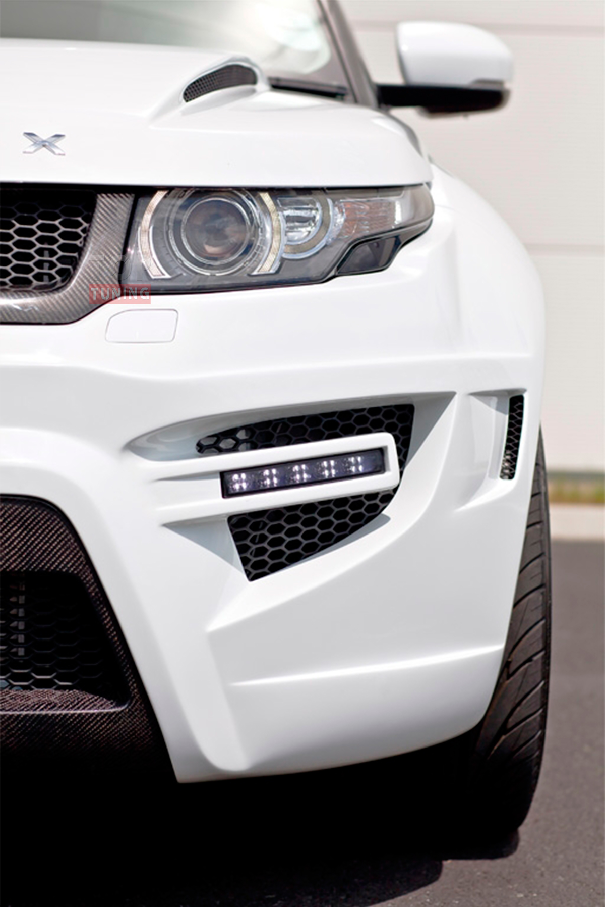 Расширение - изюминка данного обвеса, передние крылья с расширением, накладки на двери и расширители задних арок создают целостную нерушимую конструкцию, делая Evoque еще более брутальным и агрессивным.