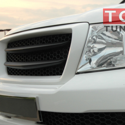 Одно из самых заметных решений для замены стандартной решетки радиатора. Имеет интересную форму и две планки в средней части. Можно установить различные варианты сетки.