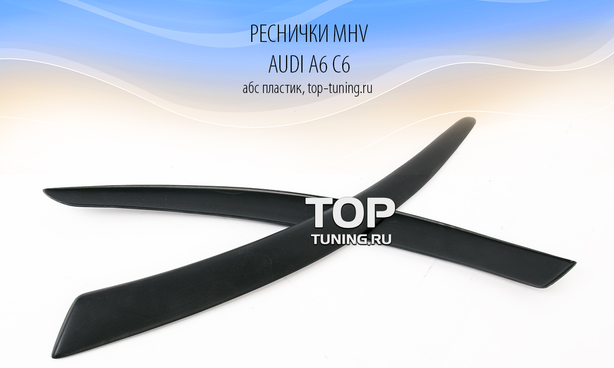 Комплект широких ресничек для тюнинга фар автомобилей Audi A6 C6 с 2004 п о 2011 год выпуска. Материал - АБС пластик.