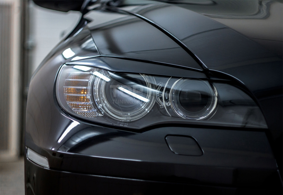 Реснички скрывают хромированную полосу адаптивной оптики (LCI), визуально делают фары BMW уже, а взгляд автомобиля более выраженным. Материал - АБС пластик. Реснички поставляются под окраску. Простой монтаж на двухсторонний 3М скотч. Установка в тех центре Топ Тюнинг по предварительной записи.