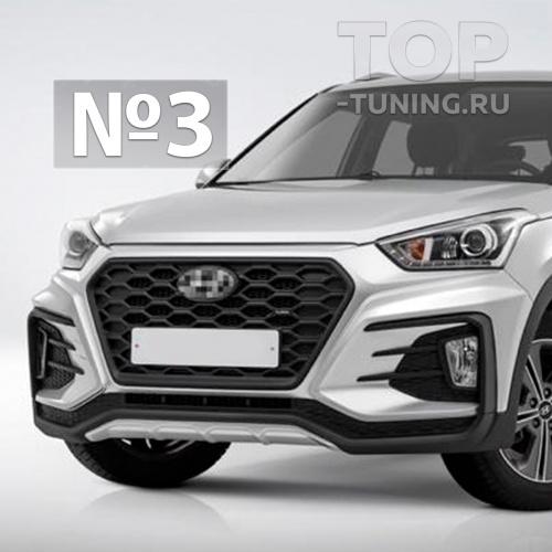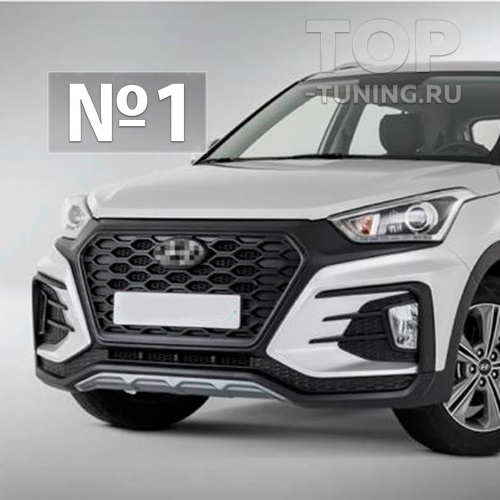 Благодаря оригинальной геометрии и количеству граней на бампере вариации окрашивания заметно увеличиваются, что позволяет создать индивидуальную версию именно вашего Крета. Дизайн аутентичной решетки радиатора, выполненной в стиле современных автомобильных новинок из линейки Hyundai, таких как на последний кузов Santa Fe или Tucson, эффектно подчеркивает нестандартную комплектацию вашего Хендай Крета.