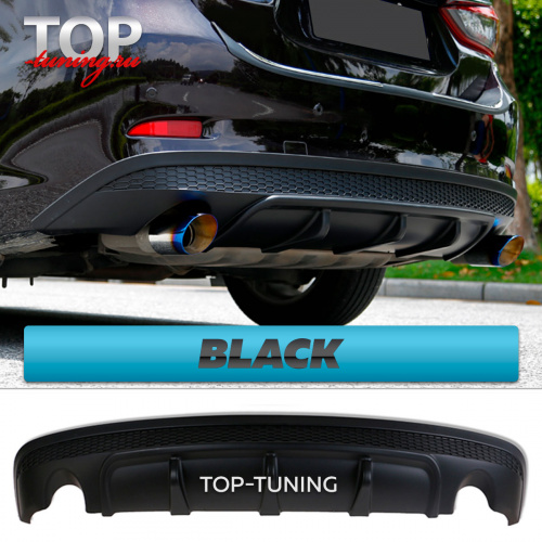 Точные габариты детали позволяют установить накладку без демонтажа заднего бампера, достаточно точно и плотно зафиксировать деталь на автомобиле. Для качественной установки потребуется очистить и обезжирить поверхность, нанести двусторонний скотч на внутренний контур диффузора (по всему периметру прилегания).