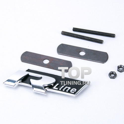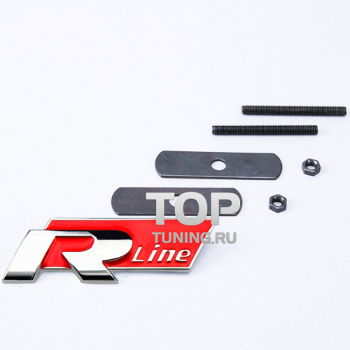 Шильд - эмблема R Line в решетку радиатора, на болтах. Размер 95*38 мм. Металл, хромированный.