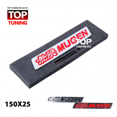 Хромированный шильд Mugen с комплектом крепежа на решетку радиатора - Размер 150*25 мм. Хромированный. Цвет: красный, черный на выбор.