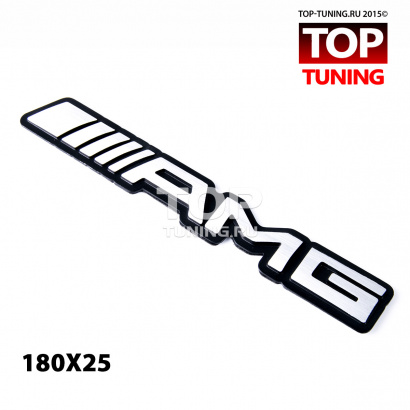 Эмблема АМГ (AMG) на черной основе - 3D наклейка. Стайлинг Мерседес Бенц. Размер 180x25 mm. Алюминий, матовая.