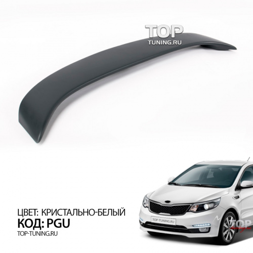 На фотографиях представлены оба вида спойлера (со стоп-сигналом и без) с опцией заводского цвета PGU (кристально белый). Спойлеры эффектно вписываются в концепцию дизайна седана и идеально дополняют облик Kia Rio 3.