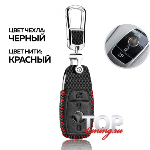 КОЖАНЫЙ ЧЕХОЛ С КАРАБИНОМ ДЛЯ СМАРТ КЛЮЧА ЛАКШЕРИ ЛАЙН 3 КНОПКИ - СТИЛЬНЫЕ АКСЕССУАРЫ ДЛЯ АВТОМОБИЛЕЙ МЕРСЕДЕС