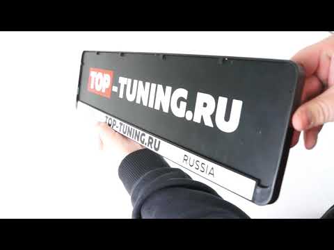 Установка взамен штатных рамок на болтовые соединения или саморезы. В отверстия для фиксации устанавливаются специальные шестигранные вкладыши для более надежной фиксации номера на бампере или крышке багажника вашего автомобиля. Гос. номер устанавливается в специальные зажимы и с нижней части, дополнительно фиксируется плотной пластиной с фирменной надписью Powered by Top-Tuning Russia.