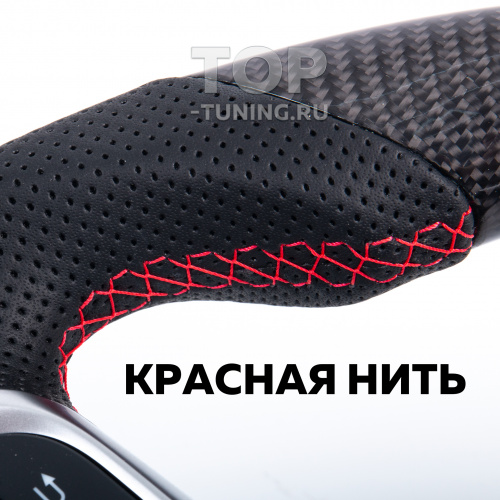 Анатомический руль GR Carbon в стиле Toyota Land Cruiser 300 для установки в Toyota Land Cruiser 200, Prado 150 и Tundra. Верхняя и нижняя часть изготовлена из карбона. По краям эко кожа наппа с псевдо перфорацией. Нулевая метка и строчка - красные. Штатный монтаж взамен заводского рулевого колеса.