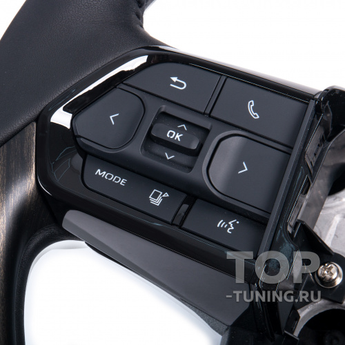 Форма и внешний вид руля выполнены в оригинальном дизайне Land Cruiser 300. Штатный монтаж взамен заводского рулевого колеса.