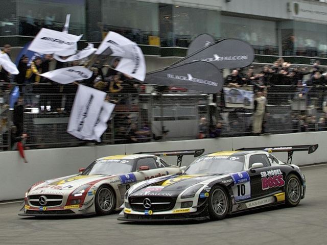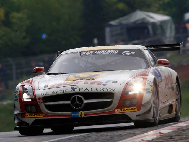 Гоночной Гульвинг принадлежит команде Black Falcon и пилотировался пятикратным чемпионом DTM Берндом Шнайдером и его товарищами по команде - Шоном Эдвардсом (бывшим чемпионом FIA GT3 и сыном бывшего гонщика F1), Йеруном Бликмоленом (бывший победителем Ле-Ман) и датским гонщиком Ники Тиимом. Команда «Черный сокол» поборолась в этой гонке с BMW Z4, выдвинутым Marc VDS, а также с красным флагом на 9-часов ожидания из-за дождя. Еще два SLS AMG финишировали третьим и четвертым. А Porsche, на чей 911-ый приходится гораздо больше побед, чем на любой другой автомобиль или автопроизводителя, пришел лишь седьмым.