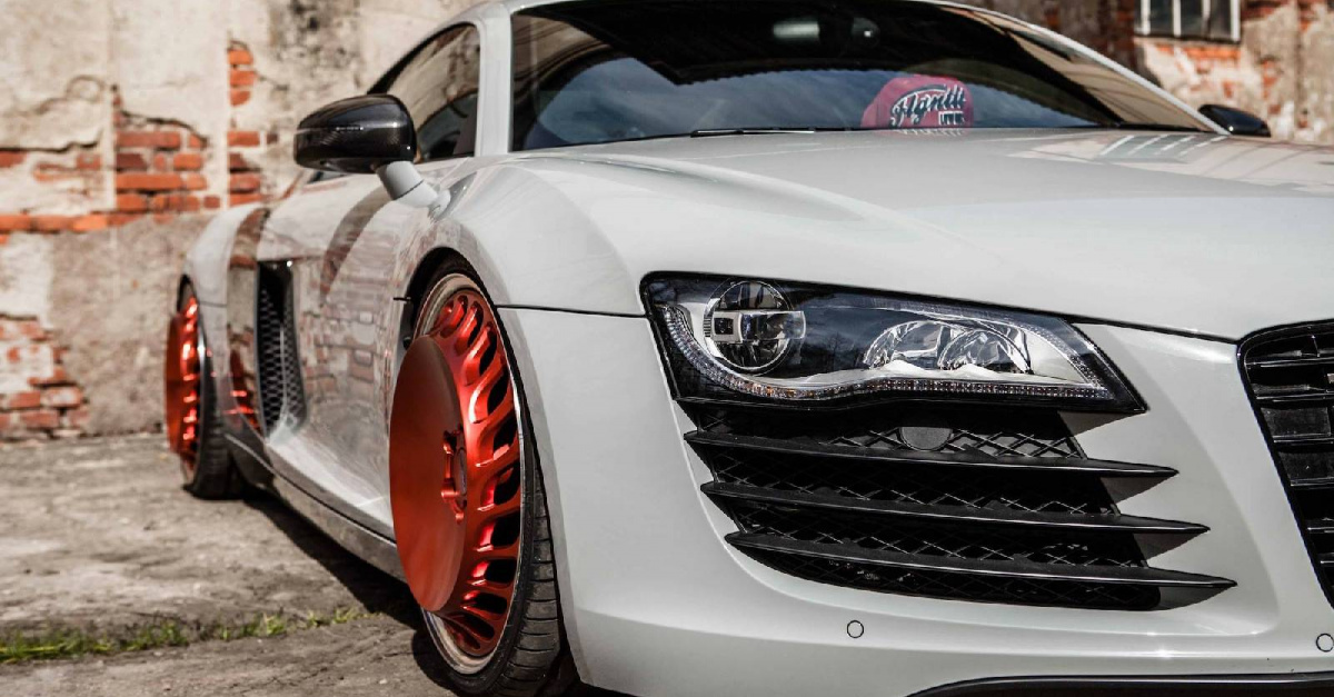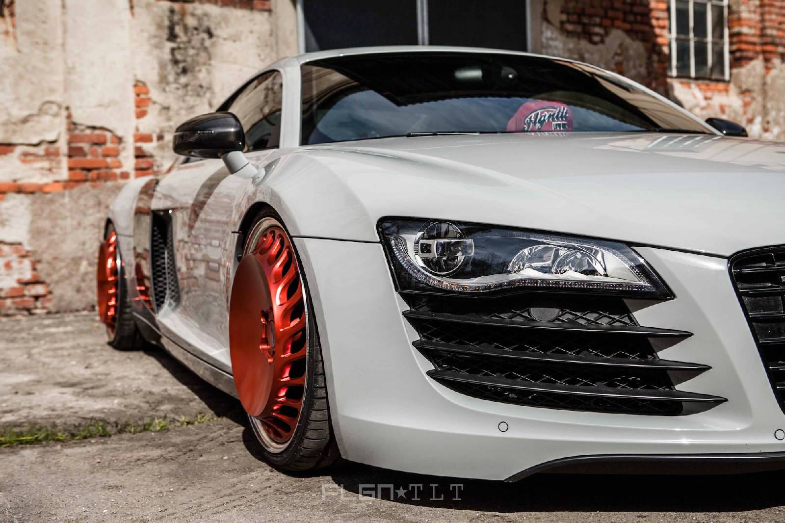 Серый цвет кузов этого Audi R8 отлично сочетается с ярким и насыщенным цветом колесных дисков. 4.2-литровый V8 производит 445 л.с. после оптимизации блока управления двигателем. Определенно, такой проект вызывает весьма неоднозначную реакцию, но тюнинг иногда доходит до крайности, а почему бы и нет?