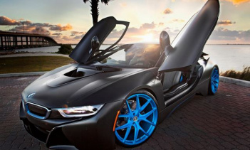 Всего лишь после установки комплекта 22-дюймовых дисков HRE P101 от HRE Performance Wheels, выполненных в потрясающем оттенке Прозрачный синий, BMW i8 стал настоящим произведением искусства. Синие диски с матовыми черными ободами на авангардном спортивный автомобиле приковывают к себе все взгляды и никого не оставят никого зрителей равнодушными.