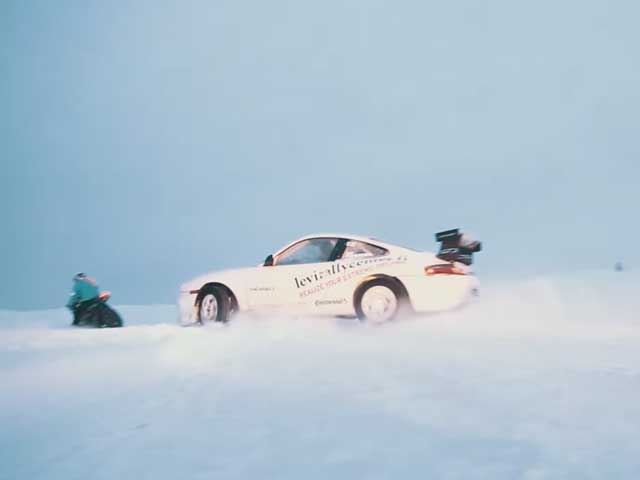 Здесь мы видим группу автомобильных энтузиастов Mayhem, которые делают одни из самых впечатляющих видео роликов. В этом видео участвует Porsche 911 GT3, Triumph Daytona (особенно смелый выбор для дрифта по снегу, учитывая, что это улица Street Bike) и снегоход Polaris RMK. Это не гонка или что-то такое, скорее просто забава на льду.