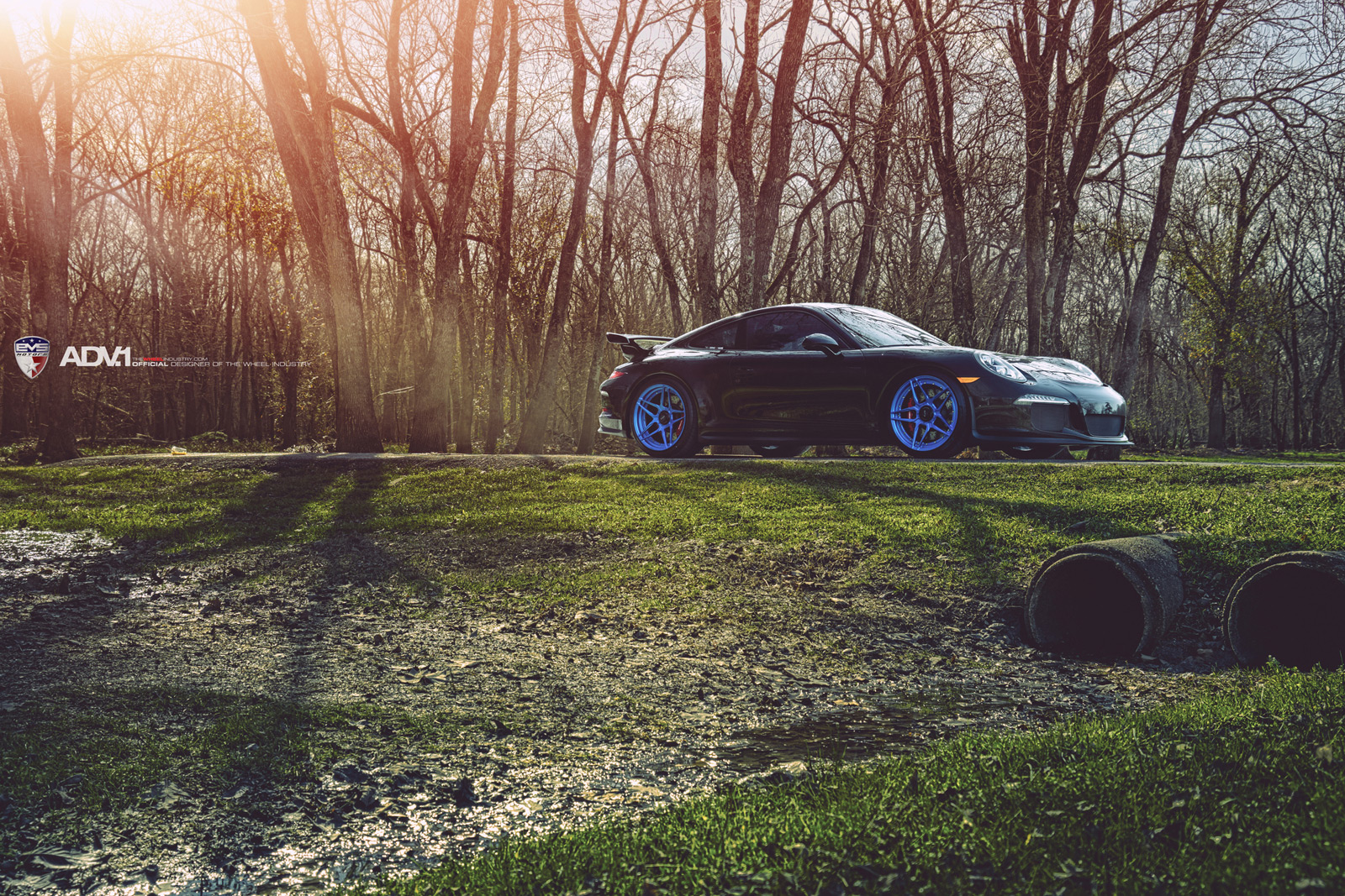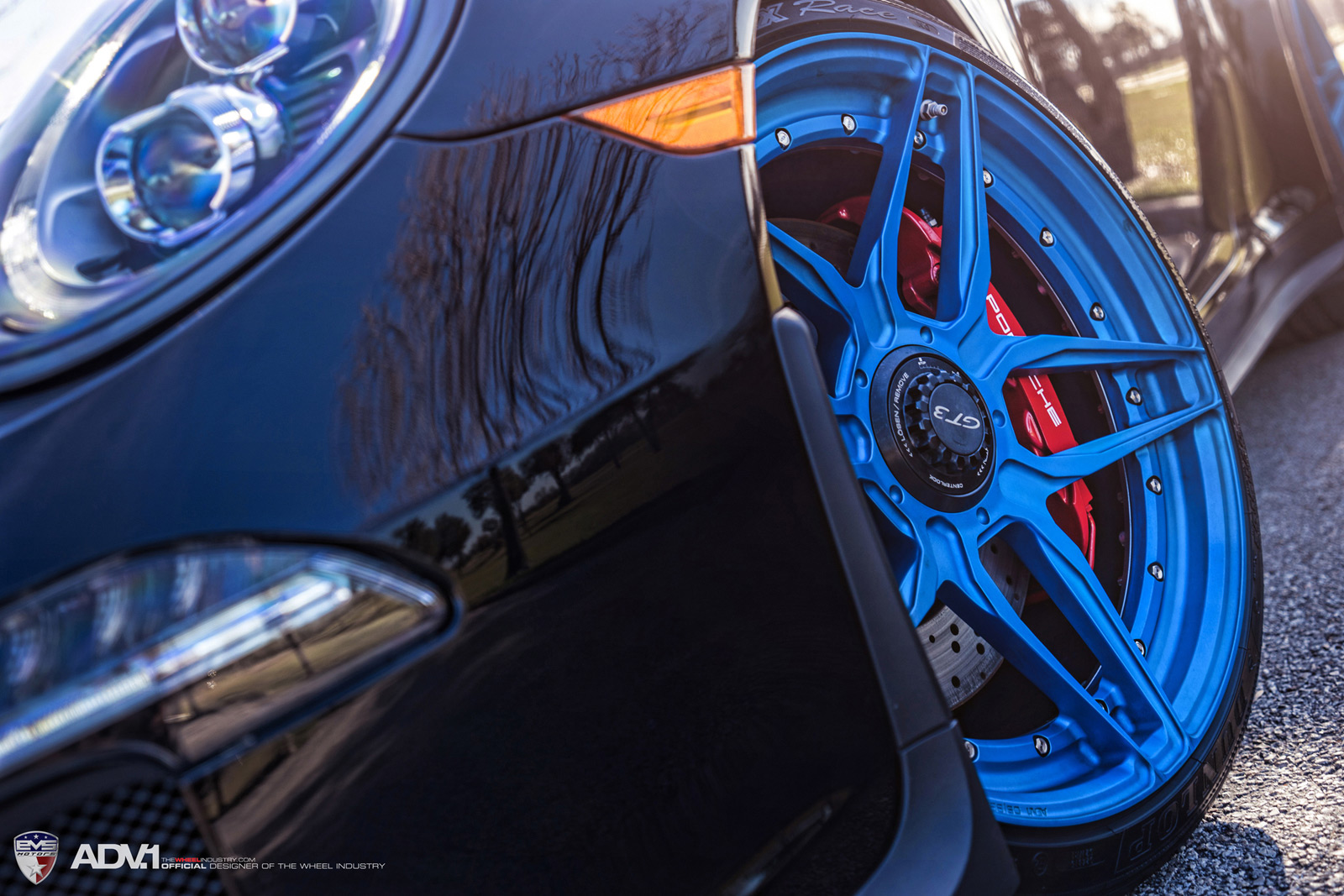 Porsche 911 GT3 с ярко-голубыми дисками ADV.1 Wheels