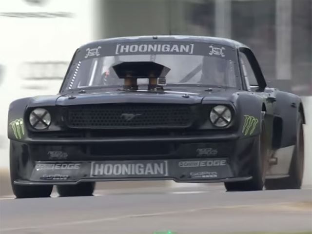 Управляемый никем иным как Кеном Блоком, Hoonigan RTR Mustang выступил в Гудвуде на Фестивале Скорости. И да, он конечно же выдал свою порцию дрифта и дыма для нетерпеливой толпы, потому что 845 лошадиных сил – это весело. Помните, он получил 8,7-литровый двигатель V8 NASCAR под капотом и весит всего около тонны. Не плохой способ представлять Америку в Великобритании.