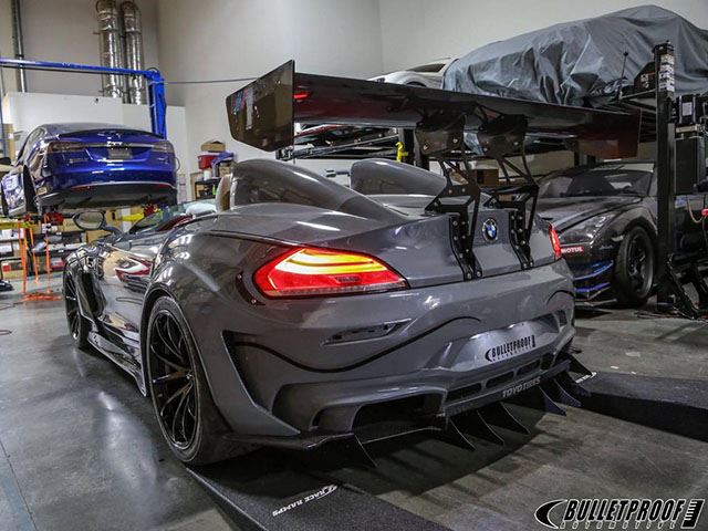 BMW Z4 GT Continuum от американской тюнинг-компании Bulletproof Automotive является одной из самых ярких звёзд SEMA 2015. Тюнинг-компания взяла незабываемый Z4 и превратила его в настоящего монстра. Спортивный автомобиль имеет совершенно новый кузов, который был глобально переделан, чтобы получить открытую кабину. В передней части Z4 Bulletproof Automotive разработали и установили новый бампер с воздухозаборниками и двойными элеронами с обеих сторон, а также появились расширенные передние колесные арки и новый капот.