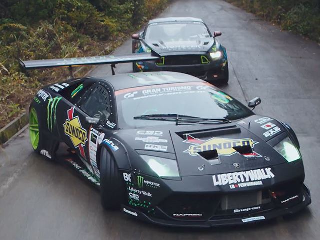 Ford Mustang RTR Гиттина-младшего - чудовищная машина с 550 лошадиными силами под капотом, а Lamborghini Murcielago Сайто был построен тюнинг-ателье Liberty Walk и Phat Five и имеет невероятные 650 лошадей! Две легенды на треке Ниигата, Япония, жгли резину в заброшенной русской деревне Ниигата. Пустынный, но живописный фон является идеальным местом для сражения уникального мускул-кара и экзотического суперкара.