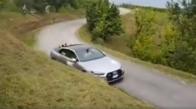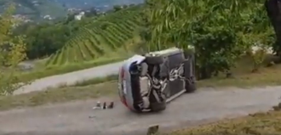 И мы, вероятно, можем сказать то же самое о его следующем маневре - похоже, что водитель пытался направить машину в обратную сторону, в направлении, которое препятствовало бы опрокидыванию автомобиля. К счастью, Audi RS5 не скатился со склона и остановился вверх колесами.