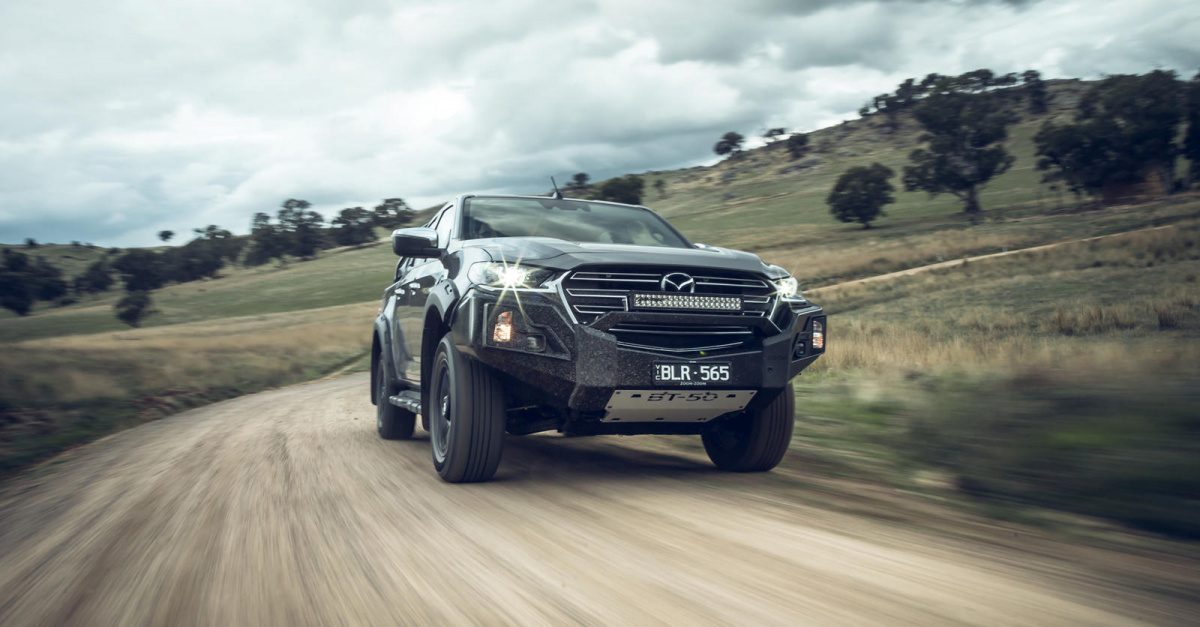 Изменения для этой модели включают стальную решетку на передней панели и двухрядную светодиодную панель Lightforce, а также расширители крыльев, подножки и 18-дюймовые легкосплавные диски с черной отделкой. Сзади спортивная штанга оснащена крышкой багажного отсека с электроприводом, а наклейки с надписью «Thunder» дают понять зрителям, что это лучший BT-50 в линейке.