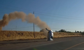 В беседе с CBS Sacramento Брайан Конеджо, который работает в компании Mechanical and Irrigation Solutions, оценивает, что автомобиль летел по воздухе на высоте около 15 метров.