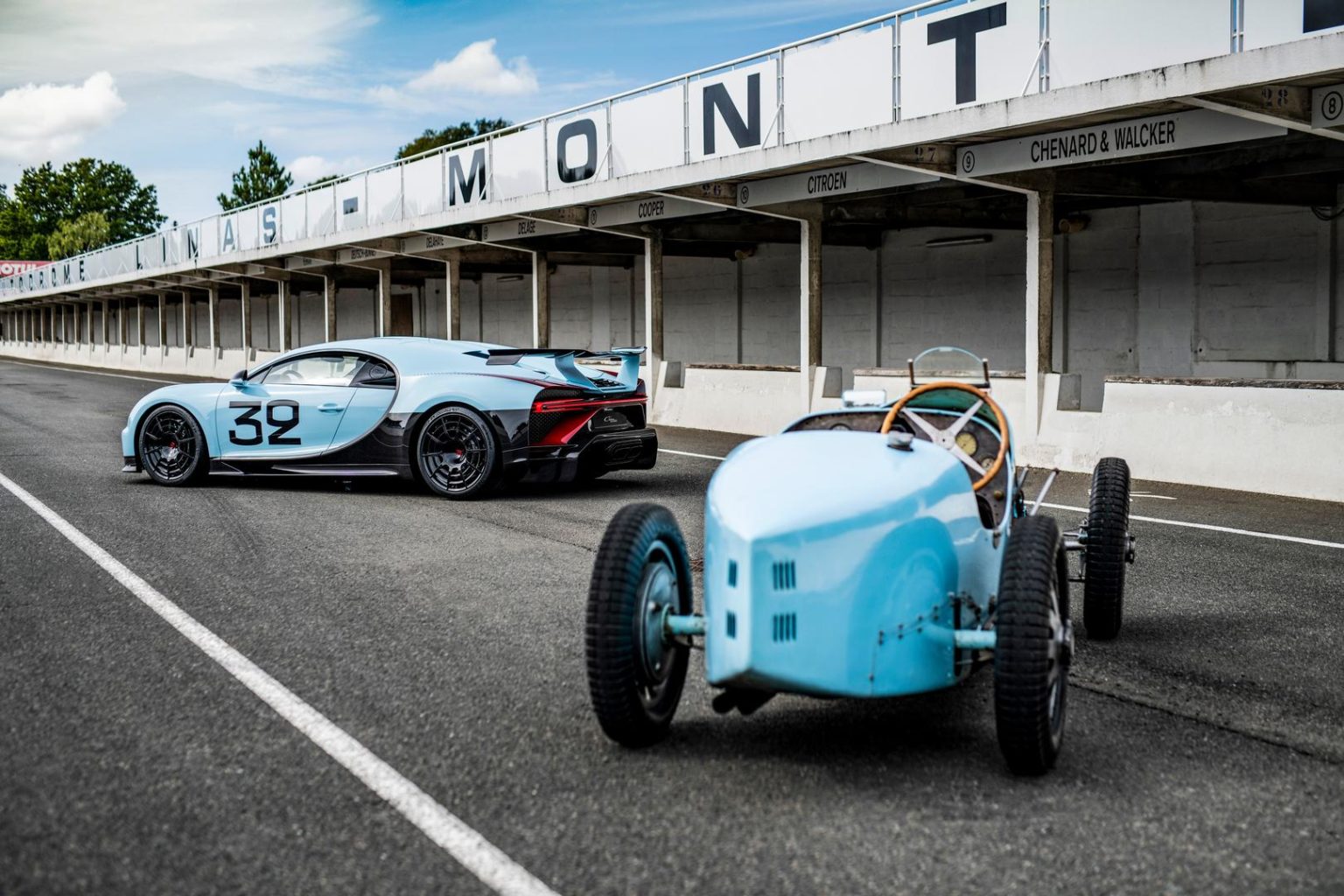 Среди бесчисленных побед Луи Широна была его легендарная победа на Гран-при Франции в 1931 году на Bugatti Type 51 с номером «32». Новый проект был украшен тем же номером, нарисованным полностью вручную, а также были созданы два новых цвета кузова, чтобы отдать дань уважения гоночным Bugatti Гран-при 20-х и 30-х годов.