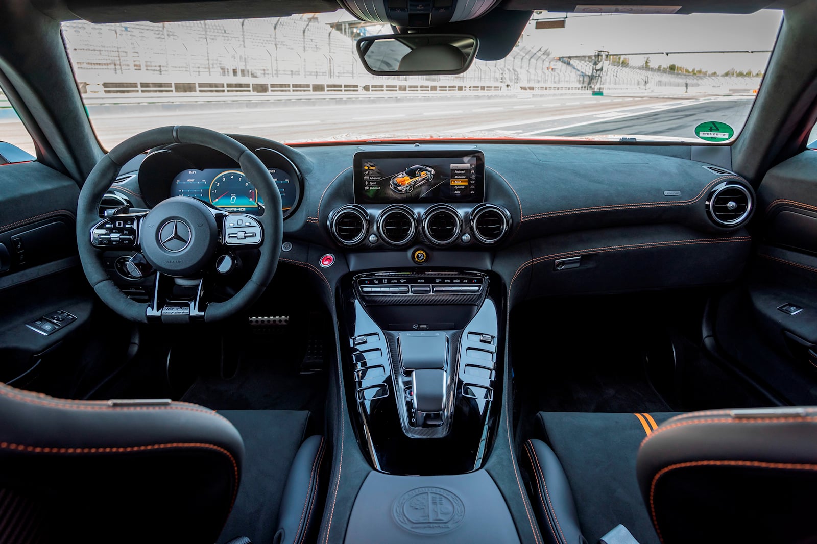 AMG GT Black Series официально дебютировал в июне 2020 года. Это была первая модель Mercedes, получившая обозначение Black Series за шесть лет, и она заслужила это название. Мощность исходит от знакомого нам 4,0-литрового двигателя V8 с двойным турбонаддувом, который выдает в общей сложности 720 лошадиных сил и 800 Нм крутящего момента. Сверхбыстрая семиступенчатая коробка передач с двойным сцеплением передает мощность только на задние колеса.