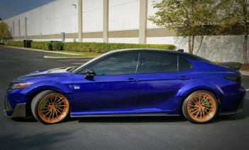 Toyota Camry — не самая популярная платформа для развития, и, несмотря на то, что Toyota предложила крутую версию TRD. Вуд умеет создавать уникальные конструкции, и он выглядит великолепно с окраской «Blurple» и панелями кузова, напечатанными на 3D-принтере. Команда дизайнеров разработала обвес для этого автомобиля, состоящий из 20 элементов, и добавила его к комплекту подвески Megan Racing и 20-дюймовым колесам Rose Golf Rotiform, обутым в шины Continental Extreme Contact. За торможение отвечает система Wilwood Dynalite.