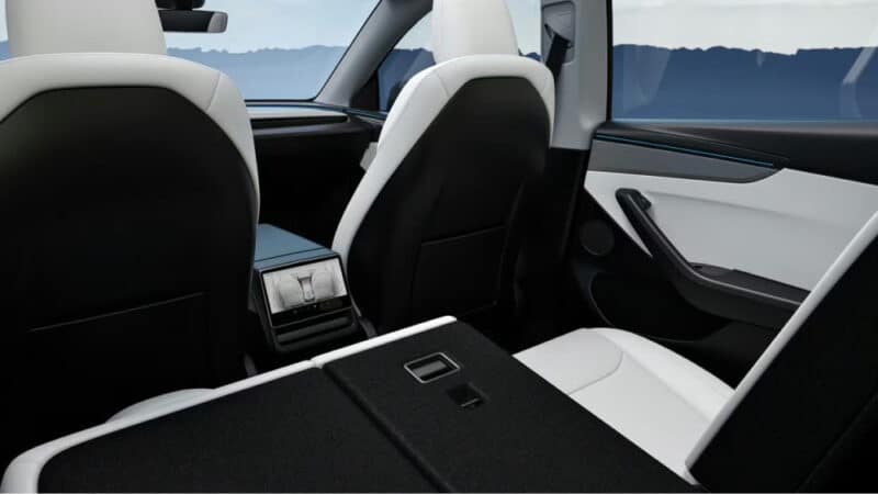 Внутри Tesla Model Y установлен 15-дюймовый сенсорный экран. Автомобиль также оснащён поворотником на рулевой колонке. Среди других особенностей новой модели Y — люк в крыше с серебристым покрытием и 16 динамиков. Объём багажника внедорожника при сложенных задних сиденьях достигает 2130 литров.