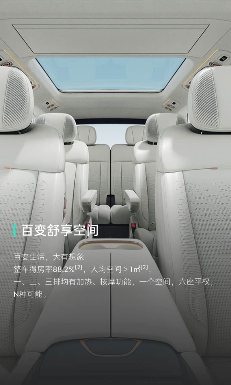 Представитель компании заявил, что Lynk & Co 900 — это первый в мире внедорожник, оснащённый двумя сиденьями с электроприводом, поворачивающимися на 180 градусов: второй ряд поддерживает поворот на 180°/90°.
