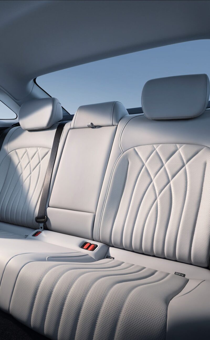 Высота переднего и заднего рядов — 970 мм и 960 мм соответственно. Сиденья комплектуются поролоновой обивкой толщиной 80 мм, включая 20 мм пены с эффектом памяти.