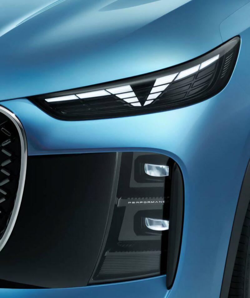 - с раздельными фарами и решёткой радиатора matrix в форме многоугольника с очертаниями буквы «Х» (похож на нынешний Tiggo 8 Plus);