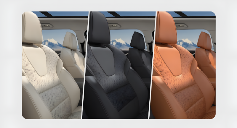 Сиденье водителя имеет 8-позиционную электрическую регулировку и 4-позиционную поддержку поясницы. Спинки задних сидений могут откидываться на 27° или 32°. Задние сиденья можно сложить одним касанием.
