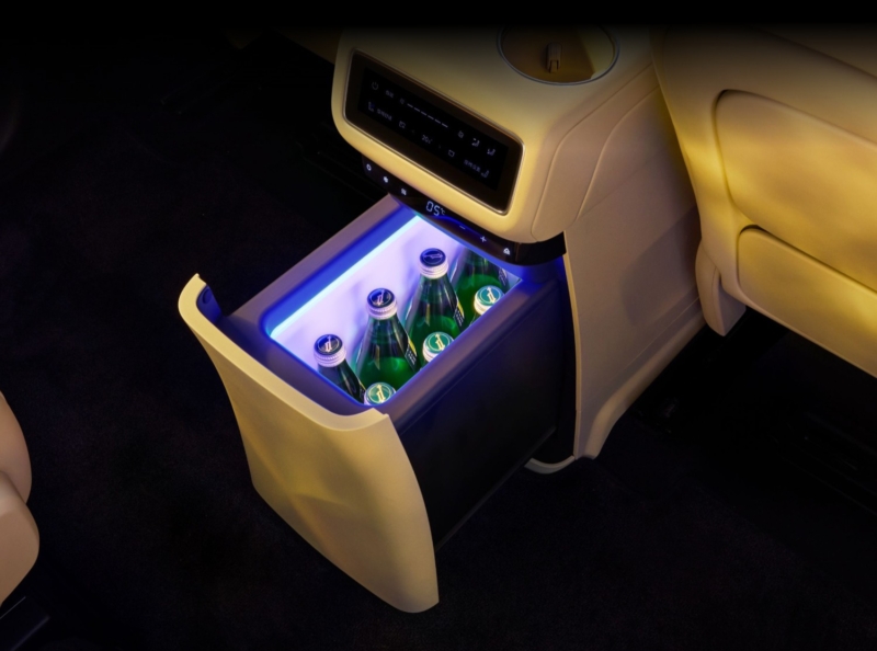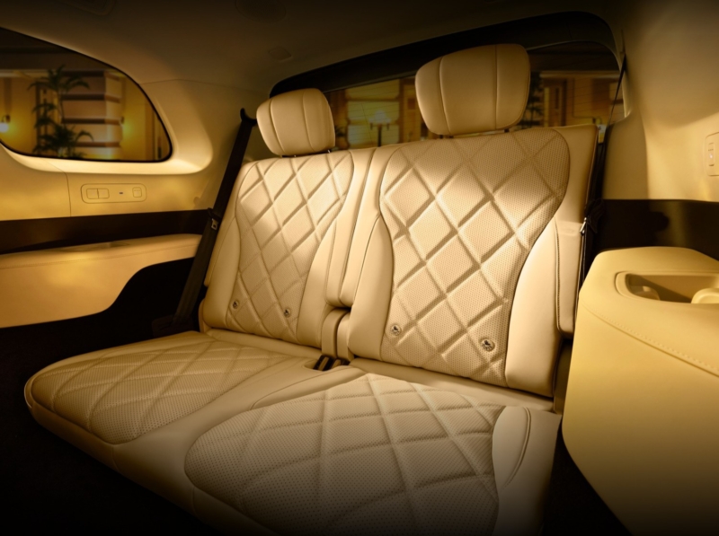 - Шестиместная компоновка (2+2+2), пространство для ног во втором ряду — 1022 мм, быстрая зарядка мощностью 66 Вт в третьем ряду, 23 динамика.