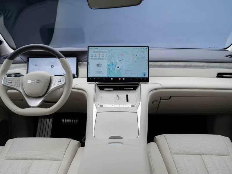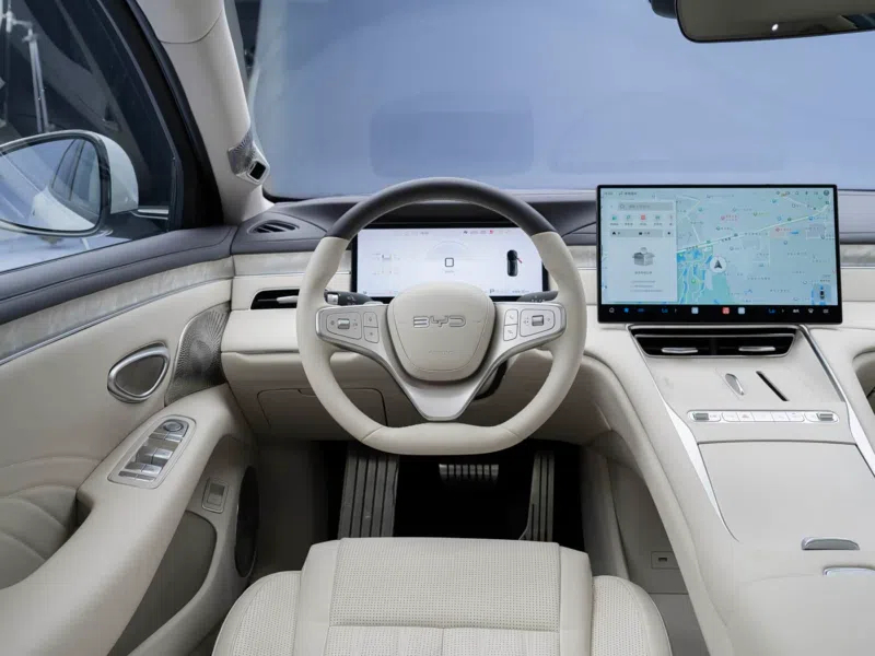 В салоне реализован дизайн кабины «Ocean Aesthetics 2.0». Хромированные элементы подчёркивают такие детали, как руль, вентиляционные отверстия, кнопки и динамики. На центральной консоли расположен «парящий» квадратный центральный экран. При этом в автомобиле сохранён рычаг переключения передач на рулевой колонке и отдельные физические кнопки.