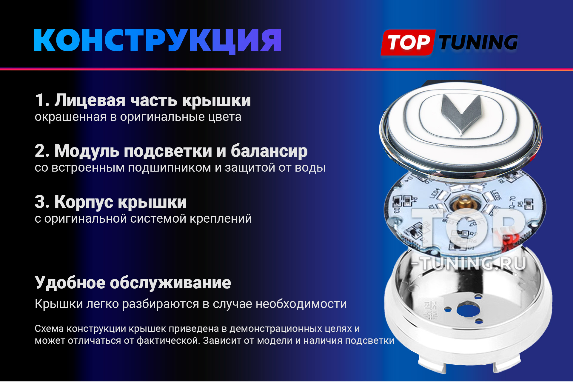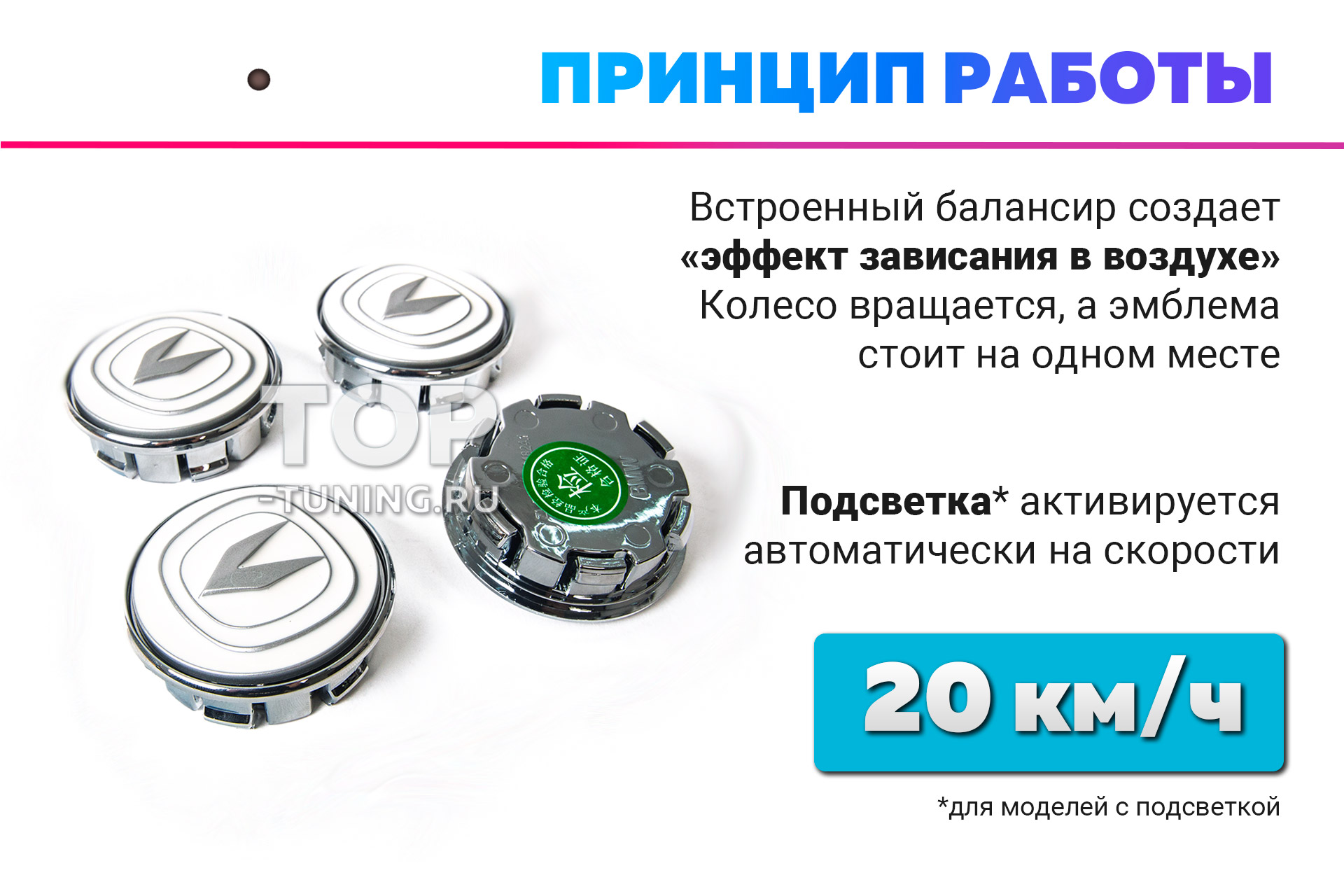 Чем выше скорость, тем ярче свечение эмблемы. Подсветка создает фоновое освещение центральной части колесного диска, что выглядит особенно привлекательно на отражающих поверхностях. Как только автомобиль остановился или скорость снизилась, подсветка выключится сама.