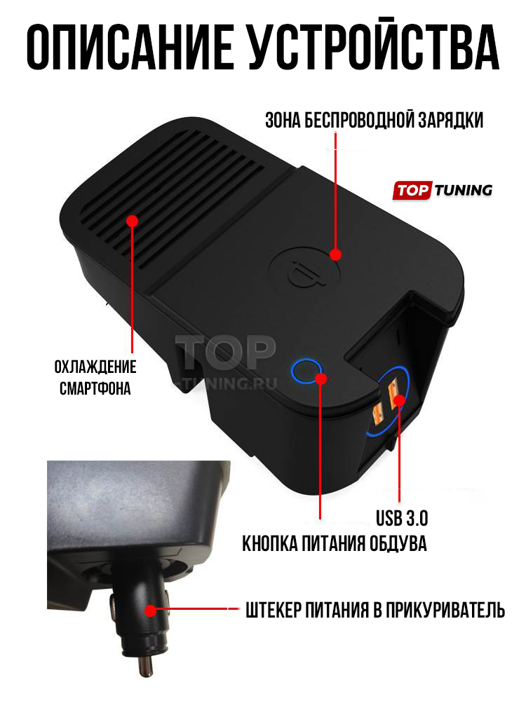Дополнительно предусмотрены 2 разъёма USB-A с поддержкой Quick Charge 3.0 для проводной зарядки других гаджетов. -