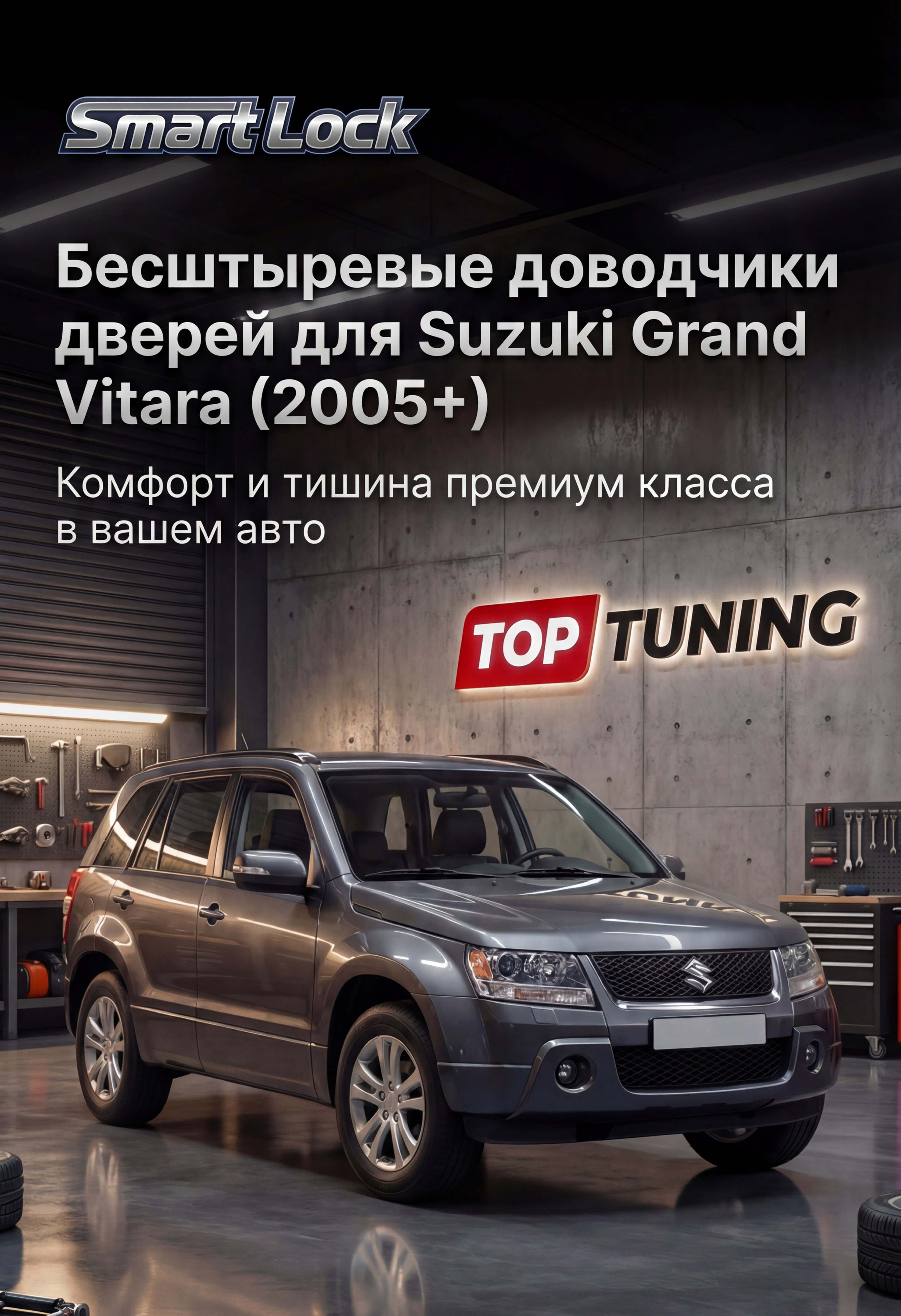 Установка бесштыревых доводчиков дверей Smart Lock для Suzuki Grand Vitara выполняется в установочном центре TOP-TUNING.