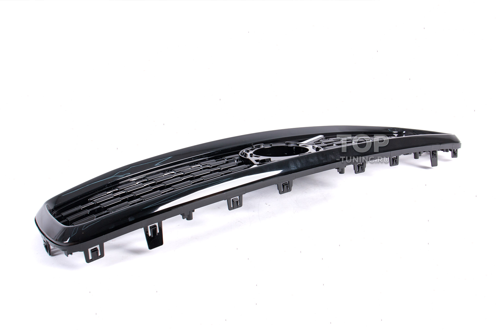 Глянцевый черный цвет с хромированными элементами подчеркивает спортивный и премиальный облик автомобиля, делая переднюю часть кузова визуально шире и динамичнее.