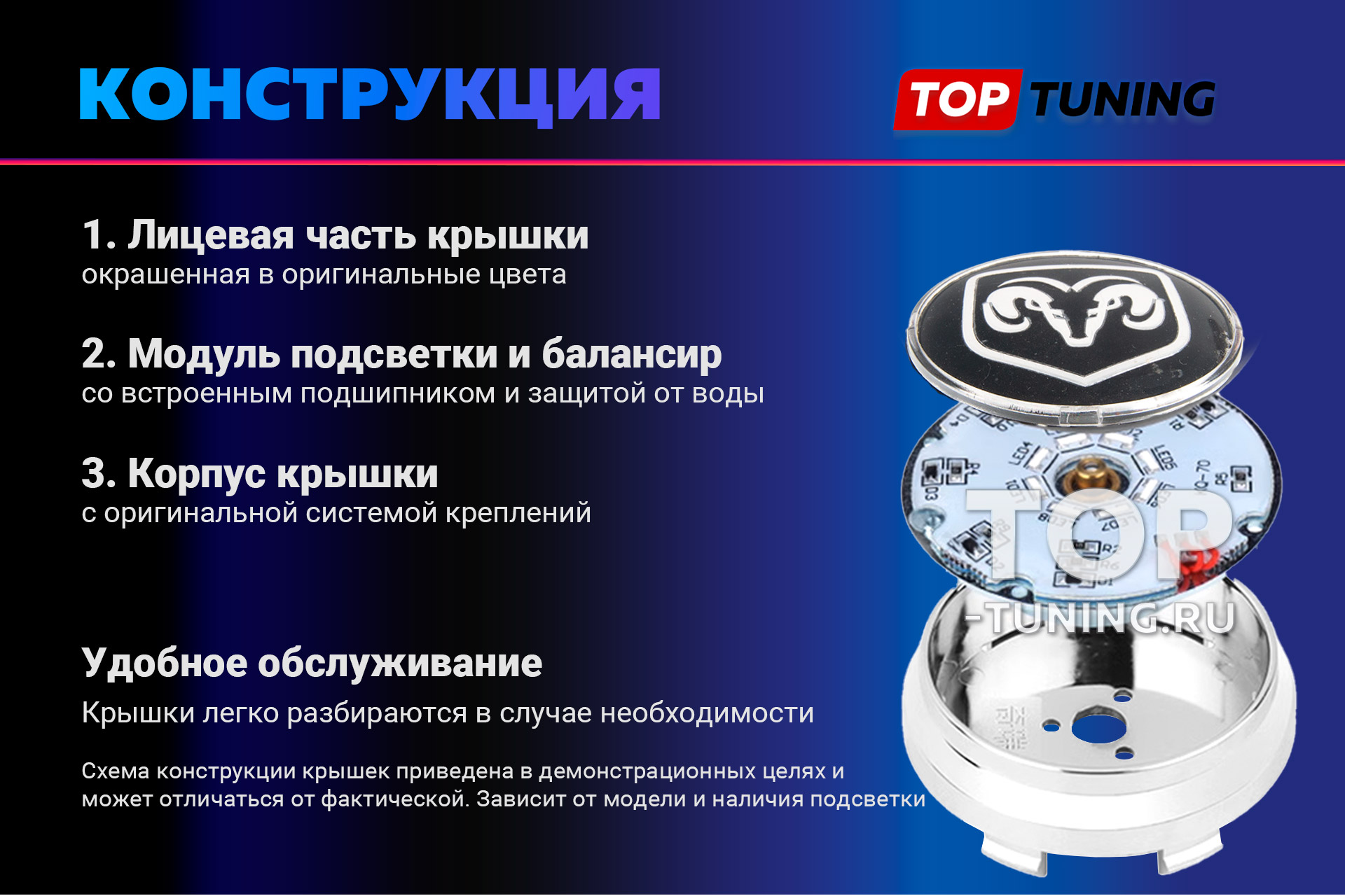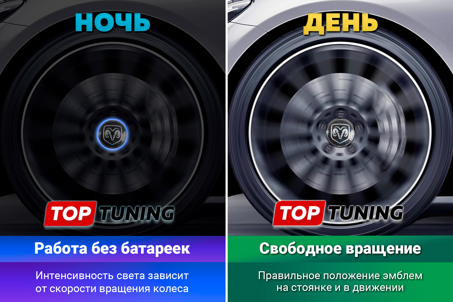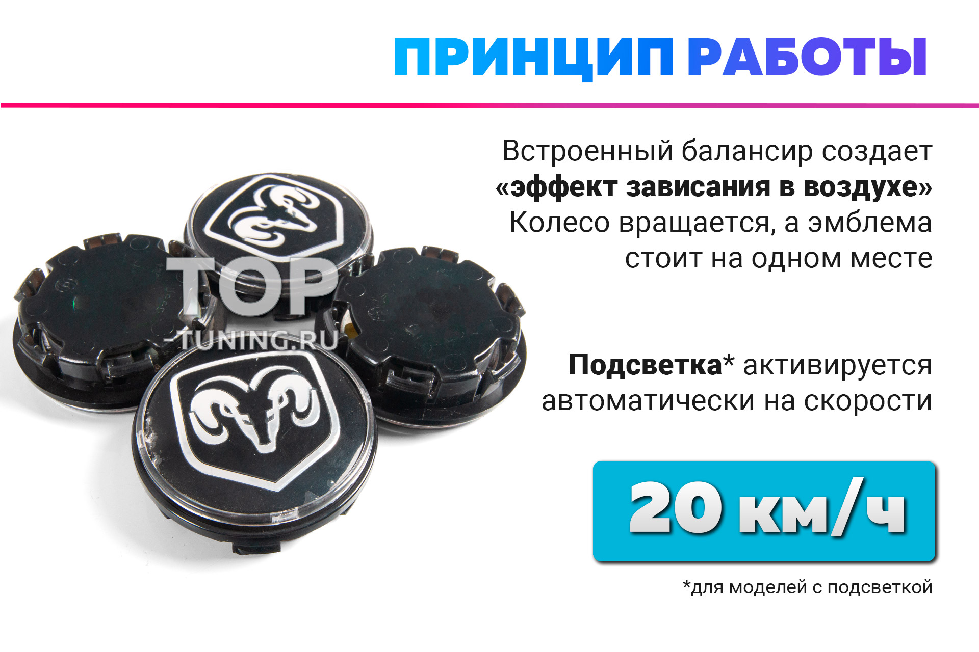 Благодаря встроенному противовесу и подшипниковому механизму, эмблема всегда остаётся в горизонтальном положении — как во время движения, так и на парковке. Колпачки выполнены в актуальном фирменном стиле Dodge и станут не только ярким элементом тюнинга, но и отличным подарком для владельца этого легендарного автомобиля.