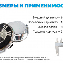 Набор подходит к оригинальным колесам BMW. Перед покупкой потребуется замерить внешний диаметр штатной эмблемы, он должен быть равным 61 мм, внутренний диаметр должен быть 56 мм.