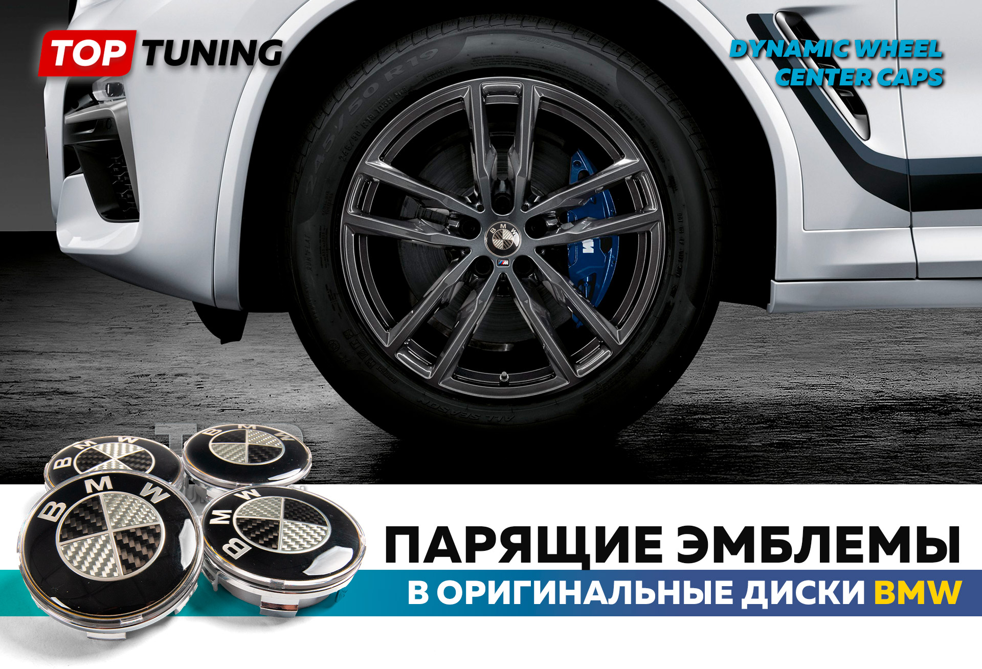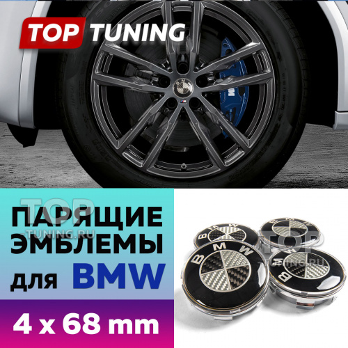 Карбоновые парящие эмблемы на диски BMW, 68 мм (комплект)