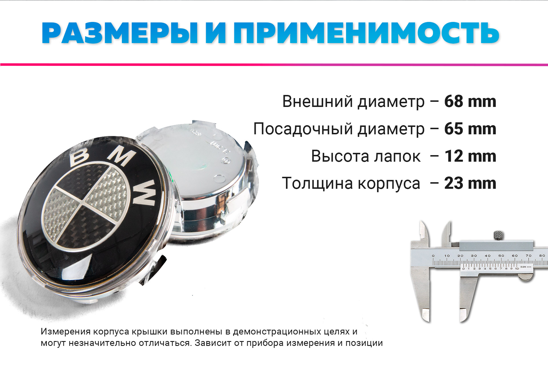 Применимость комплекта к моделям BMW и размеры крышек