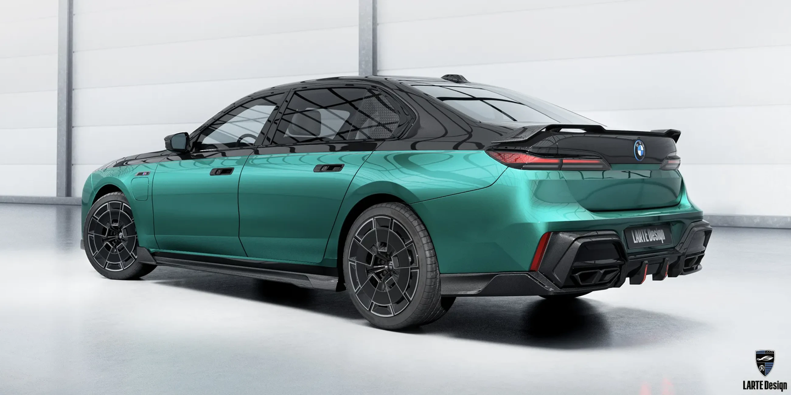 Добавьте утонченный спортивный акцент к задней части вашего BMW i7 (M70) или 7 Series 760i (G70) с спойлером Larte Performance. Элемент подчеркивает элегантные линии автомобиля, придавая ему динамичный и выразительный облик.