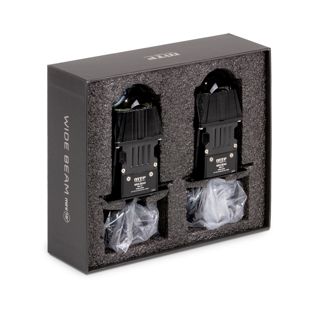 Светодиодные BI-LED линзы MTF WideBeam MINI 1.5" — это компактные двухрежимные модули ближнего и дальнего света с мощной оптикой и гибридным охлаждением, предназначенные для установки в фары автомобилей, скутеров, внедорожников и микроавтобусов.