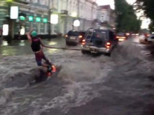 В отдельных городах наблюдался поток воды такой силы, что уличные светофоры вырывало с креплением.